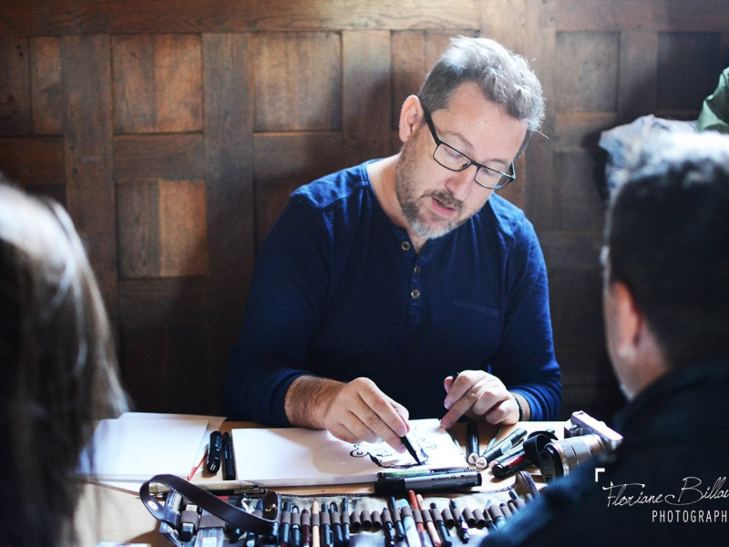 Kadran, alias Stéphane Maignan, est sarthois : il peut intervenir avec ses crayons et ses feuilles de papier pour croquer vos invités dans la région, qu'il s'agisse d'un évènement d'entreprise, d'une animation pour un CE... ou tout autre événement festif ! L'animation peut se dérouler en journée ou en soirée... En général, les personnes viennent sur l'espace où l'artiste est installé, pour se faire caricaturer, et repartent avec leur portrait.